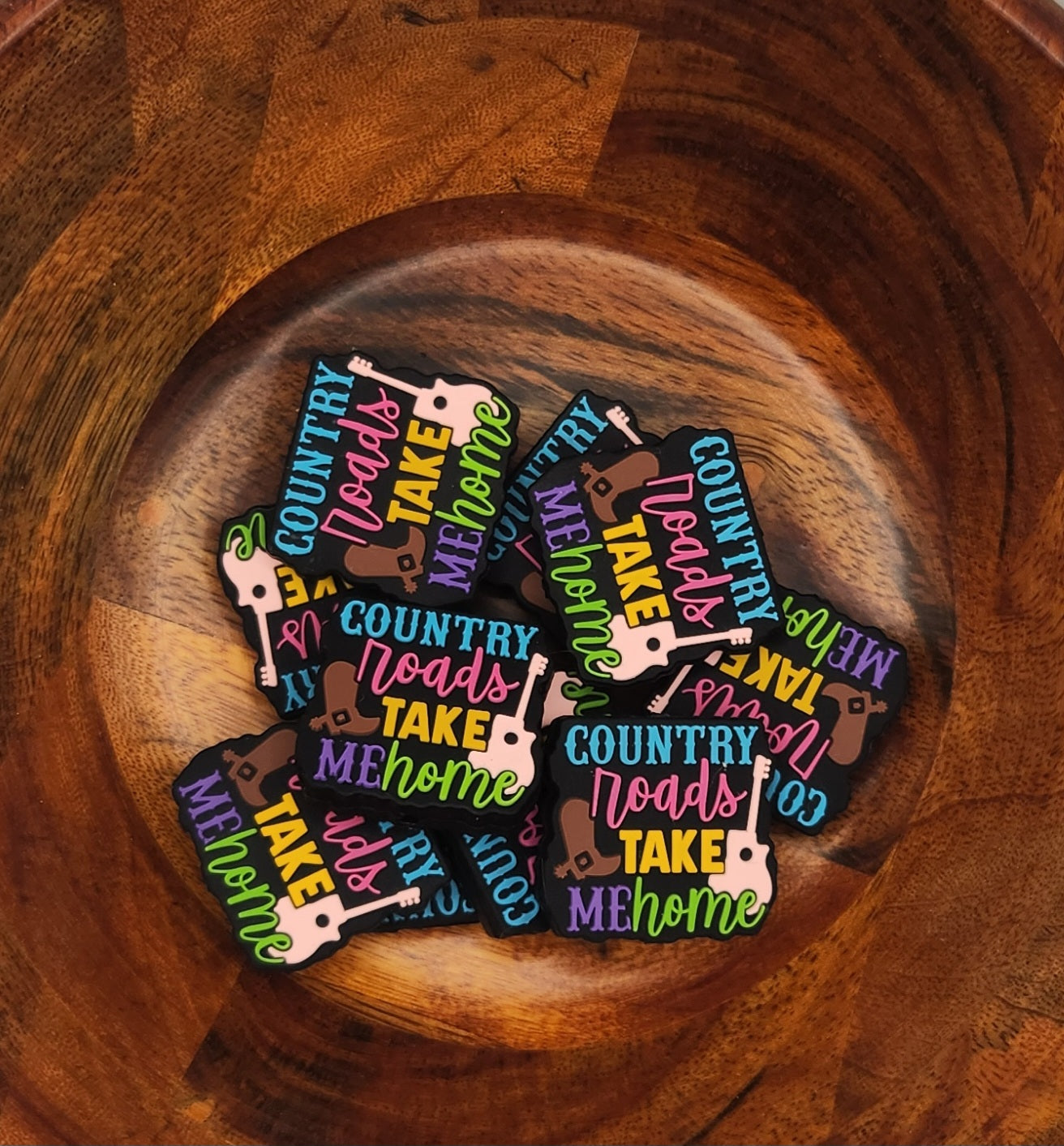 Country Roads silicone focal beads. Can be used to create a keychain, wristlet, cup charm or lanyard.