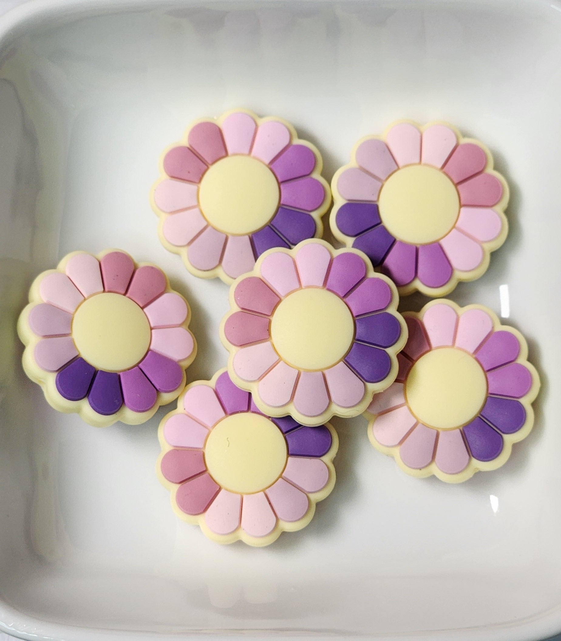 Flower silicone focal beads. Can be used to create a keychain, wristlet, cup charm or lanyard.