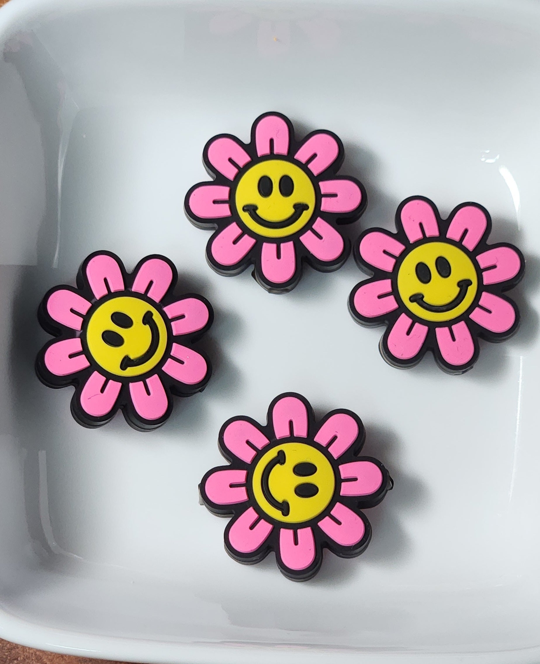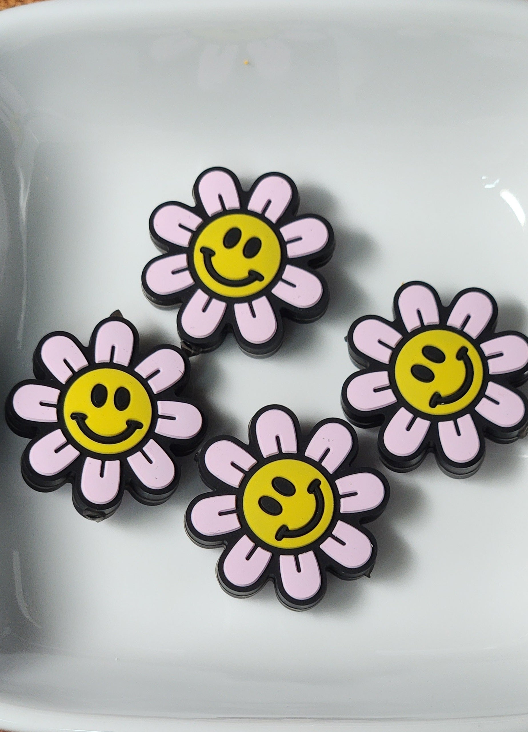 Smiley silicone focal beads. Can be used to create a keychain, wristlet, cup charm or lanyard.